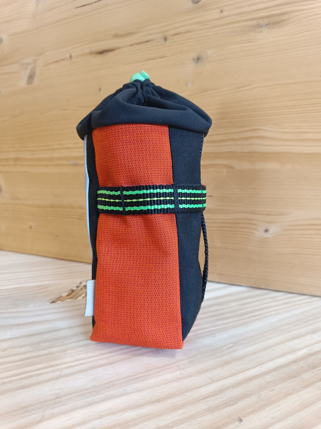 La Food Pouch (0,9l) s'accroche en trois points sur le cintre et la potence de votre vélo, grâce à 3 scratchs qui sont livrés avec. Vous pourrez utiliser les différentes sangles, placées sur trois axes différents et ainsi trouver le meilleur endroit pour la fixer sur votre bicyclette. Elle possède une poche à l'avant et se ferme grâce à un stop cordon.