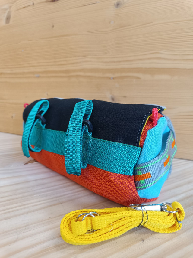 La sacoche est fournie avec une bandoulière réglable. Lorsque vous la décrochez du cintre, vous pouvez la porter comme un sac. La couleur de la sangle sur la photo n'est pas contractuelle. Je vous contacterai pour vous le faire choisir.